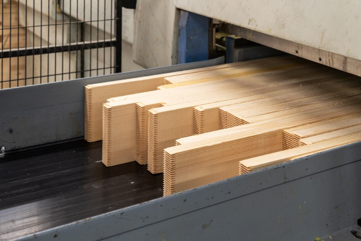 An optical system (scanner) is used for cutting out defects and for length optimisation – this completely eliminates the human factor. We achieve high and consistent quality at a maximum yield.