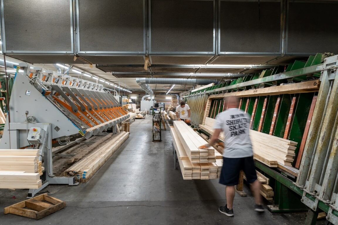 We purchase logs and cut them in our sawmill. This enables us to stay in control of the quality from the very start of the production process and to respond flexibly to requirements for atypical dimensions.